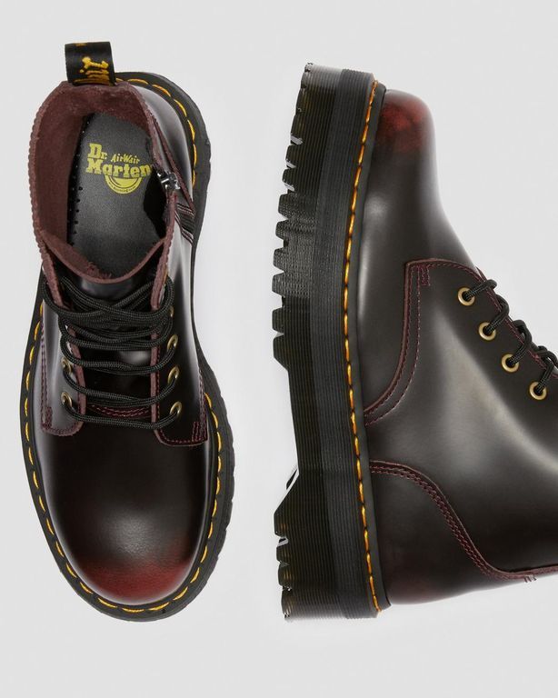 Ботинки Доктор Мартинс красного цвета на платформе милитари имеют утолщенную подошву из резины и круглый носок. Такой дизайн делает эту модель оригинальным решением для креативных личностей.